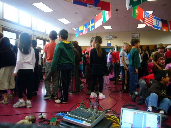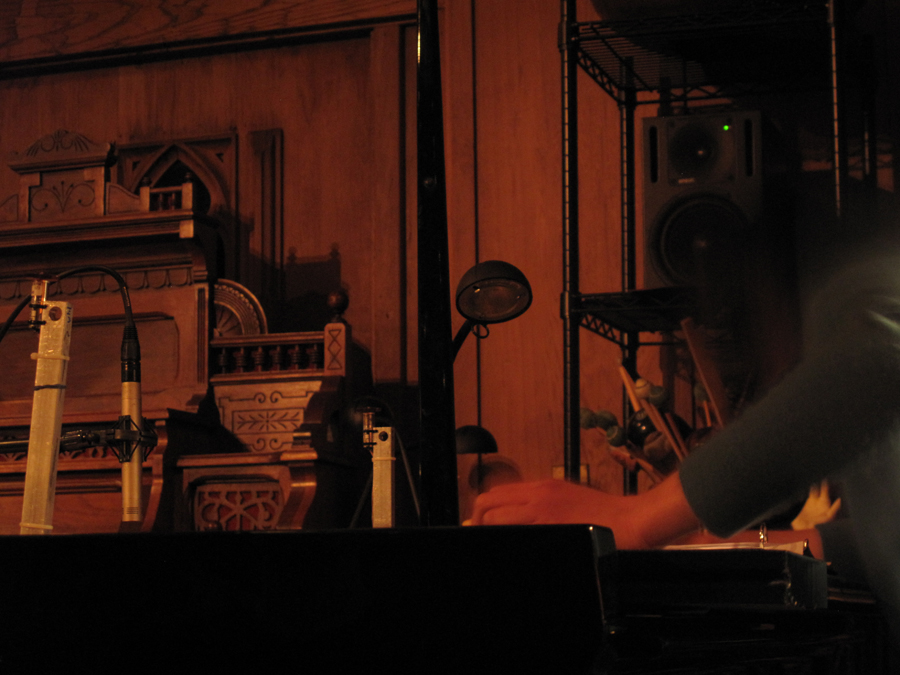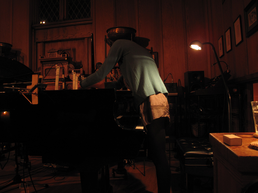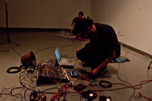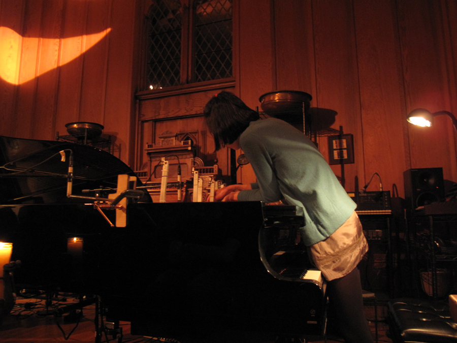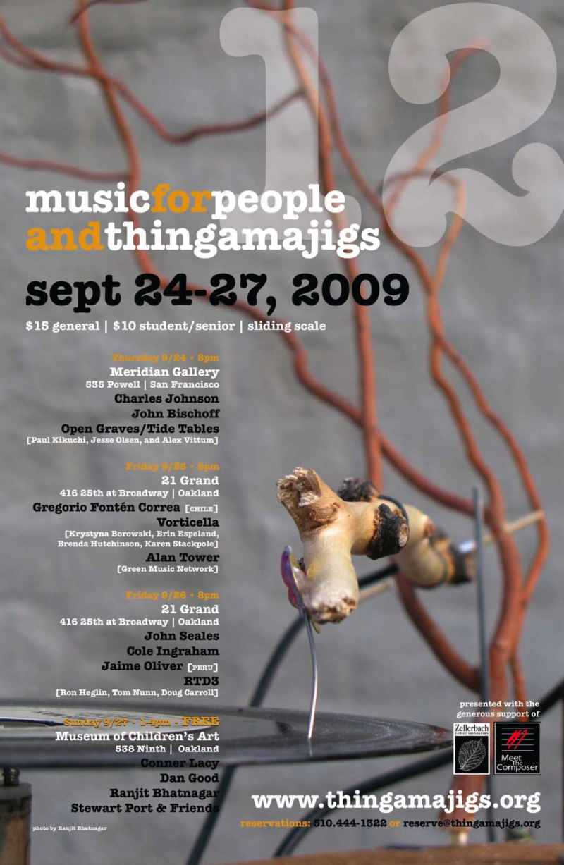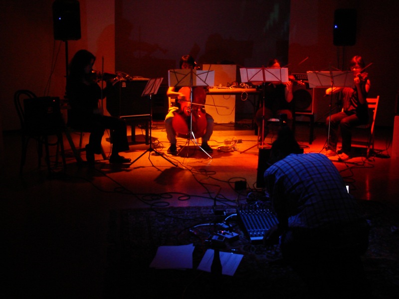 Music For People and Thingamajigs Festival. Premeiere of a new piece for 8 tuned strings, interactive electronics, resonant space, an audience and vintage footage. Performed by Emily Packard(violin), Angela Hsu(violin) and myself(electronincs). 10th Annual Thingamaajigs Festival
